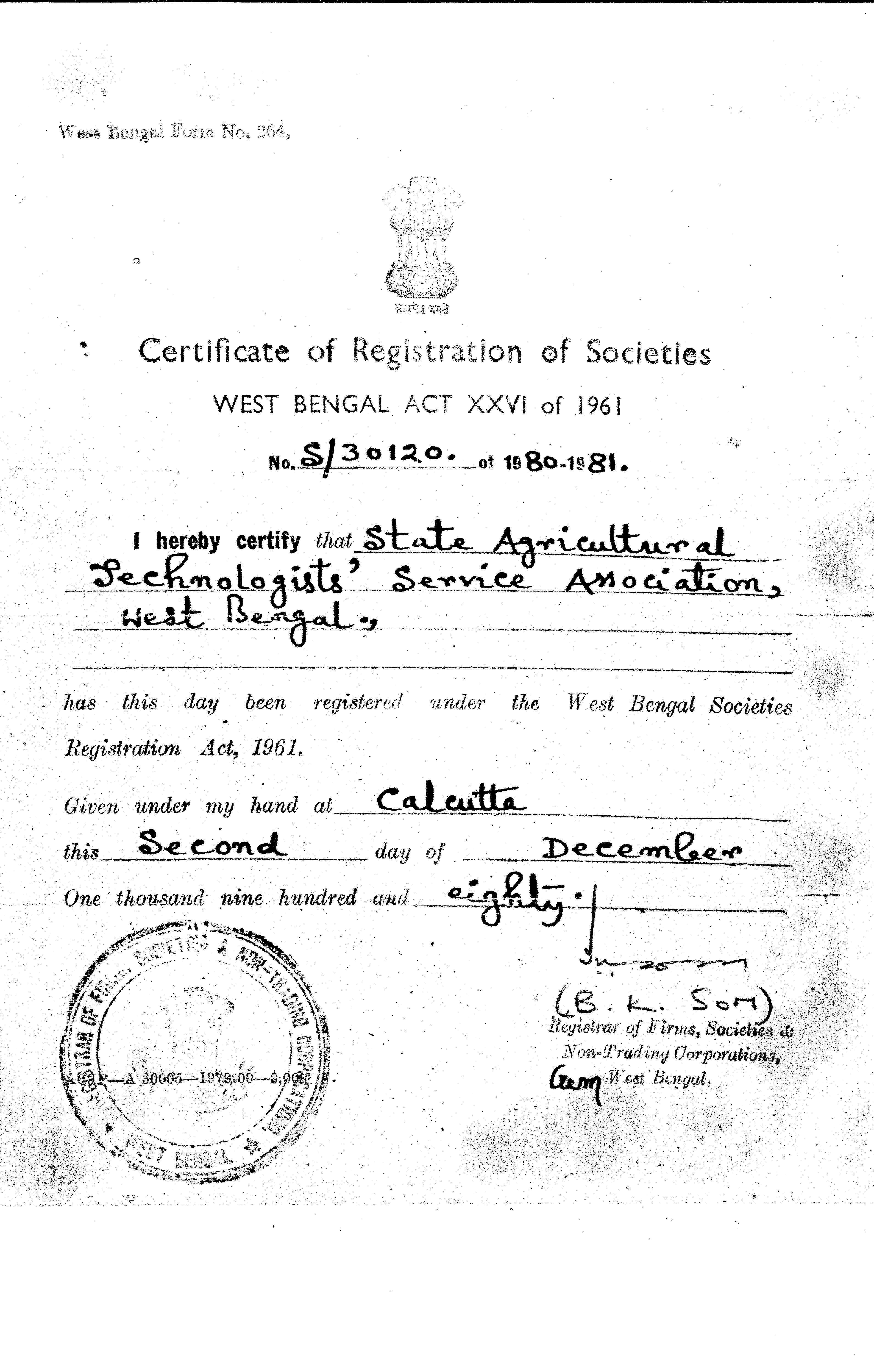 West Bengal State Agricultural Technologists' Service Association (SATSA,WB) was established in 1980.
