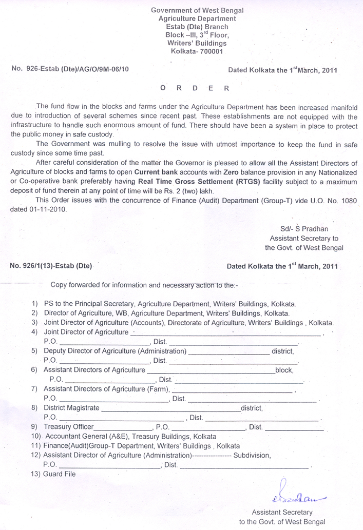 WB Finance Dept. : KALIMPONG JHARGRAM & PASCHIM BARDHAMAN