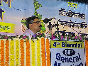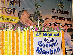 PROCEEDINGS OF 4th BIENNIAL (59th) GENERAL MEETING OF SATSA,WEST BENGAL HELD AT RAMENDRA NATH CHOWDHURY AUDITORIUM,BIDYUT BHAWAN, SALT LAKE, KOLKATA -700091 on 23rd AND 24th FEBRUARY ,2013 Date :23.02.2013 ;PRE LUNCH SESSION The 4th BGM was inaugurated through hoisting of the flag of SATSA,WB and lighting of lamp by Shri Dipankar Bhadra, President,SATSA,WB. He took the chair along with the three Vice Presidents; Shri Ashoke Kumar Roy,Shri Alik Kumar Mondal and Shri Dhruba Chowdhury.The entire meeting was presided over by the President. Shri Shibabrata Ghatak anchored the program. Welcoming all,Shri Dipankar Bhadra ;President, SATSA,WB in his inaugural speech, narrated the development of the Association. He expressed his satisfaction and pride for being the member of an association; which was established primarily for all-round development in agriculture, the socio-economic development of village communities and promoting welfare , service benefits and fraternity of the members, has stepped into its Diamond Jubilee Year .He recalled that during his long service life, the constraints faced in developmental activities as departmental officer was often compensated through the multifaceted activities of the association. To him that was a great moment of achievement ,when the State Agriculture Department adopted “Seed Village Program” following the success of SATSA in establishing seed villages in different districts of West Bengal aiming at making the State self sufficient in “quality & improved seeds”. He pointed to the fact that since independence this state had to accommodate a huge population which was disproportionate to its share of land in comparison to other states of India. This has resulted into rapid fragmentation of land, escalating the percentage of small and marginal farmers to 95.4, who own 84 percent of farm land. Having very little scope of horizontal expansion of cropped area ,the main thrust was given to land reforms and increasing productivity .He opined that the agricultural technologists and farming community of the state have lived up to the challenge of ensuring food security, presently boasting of producing eight percent of country’s food with only three percent of the country’s cultivable land. But, undebatably, there is a lot to be done .So, according to him, it is high time for addressing the issues of deficits in agricultural planning and development with due priority. The infrastructure of Agriculture Directorate & Department, which was designed during 1975-76 on the basis of the then scenario, needs to be modernised for successful dissemination of scientific knowledge of modern agriculture targeting socio-economic upliftment of the village communities. He emphasised the need for betterment of infrastructure of Seed Certification& Seed Testing wing of the Department in terms of number of units, manpower deployment and logistic support .He suggested ‘Watershed Based Approach’ in Development Planning. He pointed to the importance of filling up all the vacant technical and support staff positions of the Department. A condolence message was read out by Shri Shakti Bhadra,Jt.Secretary(Estab.);SATSA,WB in remembrance of the people who passed away after the 3rd BGM in 2011.He paid respect towards our deceased members.With due respect he mentioned the names of departed renowned personalities from different walks of life. The people who had to face untimely death in accidents, natural calamities and terrorist activites throughout the world were remembered with a heavy heart. The house observed silence for a minute as a mark of respect to the departed souls. Shri Goutam Kumar Bhowmick; General Secretary, SATSA,WB addressed the house and recalled the democratic mindset of the outgoing Central Secretariat towards steering the association with a positive and reformative approach in favour of the farming community and agricultural technologists. The CEC prioritised the unity of the members in order to assure the progress of our beloved SATSA as a commendable association. Only after a few months of the new CEC took charge, our State experienced a political change at the realm of the State Administration. The members were inspired by the pro-farmer attitude of the new Government, which was evident from their declared policy of emphasizing on the all round development of agrarian community and economic growth of rural Bengal through enhancement of production by adopting science based technologies developed through extensive research. The new Government rightly stressed on the need of assuring appropriate price to the farmers for their produce. In praise of the attitude of the new Government towards farming, the association communicated its promise for wholehearted support in achieving the dreams of the newly elected Chief Minister. Besides, the CEC prepared a suggestive road map towards achieving agricultural prosperity along with a well-chalked out plan for improvement of departmental infrastructure, which was also sent to the then Departmental Minister and erstwhile Departmental Secretary. The essence of the prepared note was to incorporate all the allied sectors ;like horticulture, animal husbandry, apiculture, pisciculture, and cooperative along with crop husbandry in developmental planning .The association felt that economic growth of the farmers could only be achieved through improvement in the performance of the allied sectors and integrating market linkage with the production system .The association’s view was reflected in the recent past by the government through conducting “Krishi Mela”s at block and sub-division level involving those sectors. SATSA,WB always endeavoured for being enriched by having regular interaction with the eminent experts through organising seminars; like the one conducted at the Institute of Engineers in September, 2011; which was graced by the presence of Dr. Abhirup Sarkar, Dr. Kalyan Rudra and Dr.Dibyendu Sen ; with a view