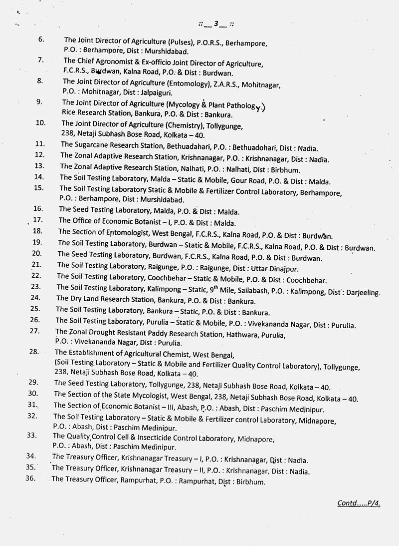 Agril. Department : KALIMPONG JHARGRAM PASCHIM BARDHAMAN ALIPURDUAR