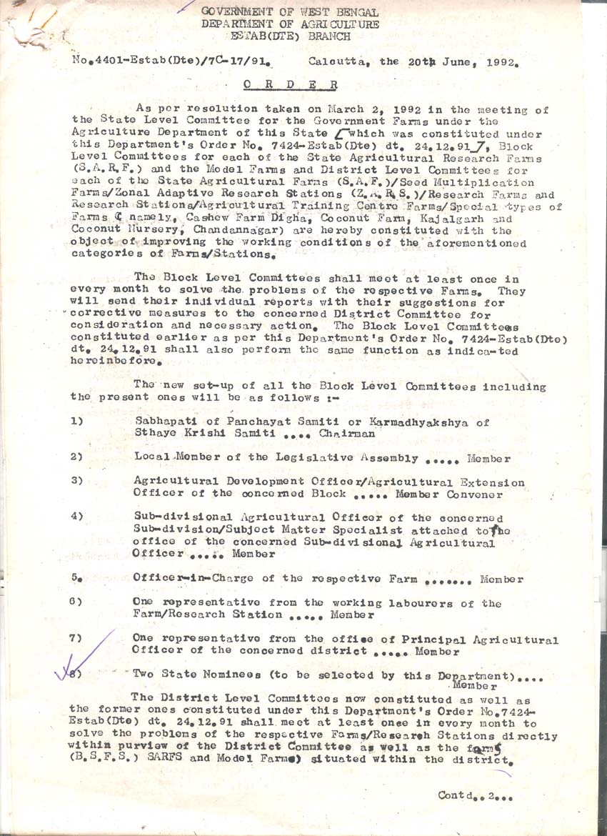 Creation of Posts in Uttar Dinajpur Agril. District