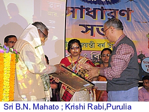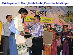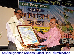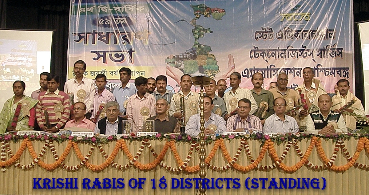 Shri Kamal Bhowmick ,Central Treasurer ,SATSA,WB submitted the detail audited accounts for the year 2011 & 2012. He presented the proposed budget for the year 2013 & 2014. He conluded with a hope to enhance financial strength of the association in future. Shri Goshto Nayban , Joint Secretary (Press & Publicity),SATSA,WB stated that a separate account for SATSA publication has been opened as per recommendation of the 3rd BGM. The association has already published ten booklets on different subjects related to agriculture and the 11th Krihi Pustika on potato cultivation would be published on that day along with the Annual Technical Issue,Volume : 17 titled Seed:Hope To Harvest. He communicated that there has been a constant endeavour to make the SATSA website informative and up to date. Shri Nayban submitted the audited accounts of SATSA Publication for 2011 &2012 and placed the proposed budget for 2013 & 2014. He solicited active cooperation from members. On arrival of Shri Pradip Kumar Mazumdar, Ag.Advisor to the Hon’ble Chief Minister, he was greeted by the General Secretary. Shri Pradip Mazumdar in his brief speech thanked SATSA for inviting him to the BGM. He acknowledged the cooperation of the agricultural technologists he has been receiving, both from inside and outside the state. He expressed concern about the poor infrastructure of the department at the block level, but assured the house that steps are being taken by the Hon’ble Chief Minister for improving the situation. He stressed on the need for acknowledging the contribution of the farmers for the society in form of rewards. He proposed restructuring of farming system with an aim to help the farmers. He communicated that the government is emphasizing on cultivation of scented rice, pulse and oilseeds which might be more remunerative for the farmers. Shri Mazumder advocated in favour of market oriented farming system for better economic returns to the farming community. Construction of sixty three markets with cold storage, advisory service etc. at block level has already been taken up for assuring direct access of farmers to the buyers within 2014. This facility will be extended to each and every block of the state in due course. According to him smiling face of farmers having satisfactory lifestyle should be the ultimate goal of the agricultural technologists. With a few words of praise for the commitment of SATSA towards agricultural development he concluded. Dr. Paritosh Bhattacharya, the Director of Agriculture, Govt. of West Bengal was received with a warm welcome by the General Secretary. Dr.Bhattacharya explained the sea change in the system of work of the department from T&V era to modern concept of ATMA. He expressed satisfaction for being able to improve the quality of inputs distributed by the department and thanked the seed certification and seed testing discipline for their cooperation even under a state of poor manpower and infrastructure. He could not assure appointment on permanent basis for filling up vacant posts due to financial constraints. However effort is on to ease the situation to some extent through engagement on contractual basis. He appealed for cooperation from all to deliver better service to the farmers under adverse situation. In tune with what Shri Mazumdar said , a session was conducted to felicitate selected farmers, one from each of the eighteen districts excluding Kolkata, who deserved special mention for their performance and contribution in the field of agriculture and allied sectors, as “Krishi Rabi-2013”.The house was impressed by the brief audio visual presentation on the works of each of the selected Krishi Rabi-s. The Krishi Rabi-s were felicitated by Shri Pradip Mazumdar, Dr.Paritosh Bhattacharya, General Secretary, President and the three VicePresidents. The Krishi Rabi-s for 2013 were Shri Mahadeb Mandal(Bnakura), Janab Sekh Soeb Hossen (Bardhaman), Shri Subhas Chandra Mandal (Birbhum), Shri Ramen Barman(Cochbehar), Shri Tapan Sardar (Dakshin 24 Pargana), Janab Abdul Motaleb Sarkar (Dakshin Dinajpur), Shri Jogendra Kharka(Darjeeling), Shri Tapan Adhikari (Hoogly), Shri Sristidhar Jana (Howrah), Shri Sushanta Sarkar(Jalpaiguri), Shri Adwaita Sarkar (Maldah), Shri Amulyaratan Sahana (Murshidabad), Shrimati Krishna Ballav(Nadia), Shri Jayanta Kumar Sau(Paschim Medinipur), Shri Debdulal Jana (Purba Medinipur), Shri Birendra Nath Mahato(Purulia), Shri Sanatan Biswas(Uttar 24 Pargana), Shri Subhas Das (Uttar Dinajpur). POST LUNCH SESSION The members were invited for discussion on the report of the General Secretary, Budget and pertinent issues. Shri Birendra Nath Mahato , Krishi Rabi of Purulia; on being requested by the President shared his experience with the house. He inspired all by his scientific but down to earth suggestions for exploring different avenues of income for economic upliftment of the farmers. He emphasised on agrosilviculture and discussed the process of raising teak(Segun) seedlings on a commercial basis. He affirmed that without agriculture no other sector, may it be industry or service, could flourish because farming supplies the most basic need of life-FOOD. With sincere note of gratitude for the recognition received from SATSA ,both at the district and the state level , Shri Mahato concluded his speech. Shri Murari Yadab; placed the official resolution, which engulfed the expectations and suggestions of the members, for approval of the house. The salient features of the resolution were- 1 A. Reorientation of Administrative wing under the Directorate of Agriculture. B. Reorientation of Research Wing under the Directorate of Agriculture. 2. Redistribution of Sanctioned Posts in Un-revised Pay Scale Nos.16,17,18 &19 i.e. Pay Band-4,4A,4B and 5 having Grade Pay of Rs.5400/-, 6600/-, 7600/- and 8700/- respectively(ROPA 2009). 3. Creation of Discipline wise separate Directorate under the Department of Agriculture. 4. Change of Recruitment Rules for appointment 