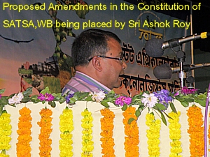 Shri Ashoke Kumar Roy,Vice President,SATSA,WB placed proposals for amendment of the Constitution of SATSA, West Bengal for approval.The following clauses were proposed for amendment or deletion:- 3(a),3(a)(i),3(b)(vi),3(c), 4(i),4(iv), 6(a)(i),6(a)(ii),6(b)(i), 7(a)(viii),7(a)(ix),7(a)(xi),7(a)(xiv),7(a)(xv), 8(d)(iv),8(g)-new clause, 10-new sub clause, 12(iv),12(v),12(vi),12(xiv)-new clause,12(xv)-new clause, 15(a)(i),15(a)(iii),15(a)(iv),15(a)(v),15(a)(vi),15(b)(i),15(b)(ix),15(c)(i),15(c)(iii), 15(c)(iv),15(c)(vii),15(d), 16(v),16(vi), and 19(ii). A provision has been made for a post of treasurer for SATSA PUBLICATION [23rd CEC member] from 2015 onwards. It has been proposed that during 2013 and 2014 any suitable CEC member or DEC member of Kolkata District Unit will take the charge of the proposed post. House unanimously approved the Official Resolution, Budget Provisions (general & publication) and Proposals for Amendment of the Constitution of SATSA, WB. A few unrealised outstation cheques were waived with approval of the House. SATSA Annual Technical Issue, Volume: 17 titled Seed ; Hope To Harvest , A Compendium of Government Orders & Circulars and SATSA Krishi Pustika, No. 11 on Potato Cultivation were ceremoniously released respectively by Dr.Paritosh Bhattacharya,DAWB, Shri Dipankar Bhadra, President,SATSA,WB and Shri Birendra Nath Mahato,Krishi Rabi(Purulia). At the end of the first day of the 4th BGM and Diamond Jubilee Year celebration the newly elected CENTRAL EXECUTIVE COMMITTEE of SATSA,WB for 2013 and 2014 was declared and the members were greeted by the house. With a note of hope and aspirations and appeal for cooperation to the members, the re-elected General Secretary, Shri Goutam Kumar Bhowmik addressed the house and invited all to participate in the Seminar on Seed: Hope To Harvest scheduled on 24th February, 2013 .