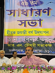 PROCEEDINGS OF 4th BIENNIAL (59th) GENERAL MEETING OF SATSA,WEST BENGAL HELD AT RAMENDRA NATH CHOWDHURY AUDITORIUM,BIDYUT BHAWAN, SALT LAKE, KOLKATA -700091 on 23rd AND 24th FEBRUARY ,2013 Date :23.02.2013 ;PRE LUNCH SESSION The 4th BGM was inaugurated through hoisting of the flag of SATSA,WB and lighting of lamp by Shri Dipankar Bhadra, President,SATSA,WB. He took the chair along with the three Vice Presidents; Shri Ashoke Kumar Roy,Shri Alik Kumar Mondal and Shri Dhruba Chowdhury.The entire meeting was presided over by the President. Shri Shibabrata Ghatak anchored the program. Welcoming all,Shri Dipankar Bhadra ;President, SATSA,WB in his inaugural speech, narrated the development of the Association. He expressed his satisfaction and pride for being the member of an association; which was established primarily for all-round development in agriculture, the socio-economic development of village communities and promoting welfare , service benefits and fraternity of the members, has stepped into its Diamond Jubilee Year .He recalled that during his long service life, the constraints faced in developmental activities as departmental officer was often compensated through the multifaceted activities of the association. To him that was a great moment of achievement ,when the State Agriculture Department adopted “Seed Village Program” following the success of SATSA in establishing seed villages in different districts of West Bengal aiming at making the State self sufficient in “quality & improved seeds”. He pointed to the fact that since independence this state had to accommodate a huge population which was disproportionate to its share of land in comparison to other states of India. This has resulted into rapid fragmentation of land, escalating the percentage of small and marginal farmers to 95.4, who own 84 percent of farm land. Having very little scope of horizontal expansion of cropped area ,the main thrust was given to land reforms and increasing productivity .He opined that the agricultural technologists and farming community of the state have lived up to the challenge of ensuring food security, presently boasting of producing eight percent of country’s food with only three percent of the country’s cultivable land. But, undebatably, there is a lot to be done .So, according to him, it is high time for addressing the issues of deficits in agricultural planning and development with due priority. The infrastructure of Agriculture Directorate & Department, which was designed during 1975-76 on the basis of the then scenario, needs to be modernised for successful dissemination of scientific knowledge of modern agriculture targeting socio-economic upliftment of the village communities. He emphasised the need for betterment of infrastructure of Seed Certification& Seed Testing wing of the Department in terms of number of units, manpower deployment and logistic support .He suggested ‘Watershed Based Approach’ in Development Planning. He pointed to the importance of filling up all the vacant technical and support staff positions of the Department. A condolence message was read out by Shri Shakti Bhadra,Jt.Secretary(Estab.);SATSA,WB in remembrance of the people who passed away after the 3rd BGM in 2011.He paid respect towards our deceased members.With due respect he mentioned the names of departed renowned personalities from different walks of life. The people who had to face untimely death in accidents, natural calamities and terrorist activites throughout the world were remembered with a heavy heart. The house observed silence for a minute as a mark of respect to the departed souls. Shri Goutam Kumar Bhowmick; General Secretary, SATSA,WB addressed the house and recalled the democratic mindset of the outgoing Central Secretariat towards steering the association with a positive and reformative approach in favour of the farming community and agricultural technologists. The CEC prioritised the unity of the members in order to assure the progress of our beloved SATSA as a commendable association. Only after a few months of the new CEC took charge, our State experienced a political change at the realm of the State Administration. The members were inspired by the pro-farmer attitude of the new Government, which was evident from their declared policy of emphasizing on the all round development of agrarian community and economic growth of rural Bengal through enhancement of production by adopting science based technologies developed through extensive research. The new Government rightly stressed on the need of assuring appropriate price to the farmers for their produce. In praise of the attitude of the new Government towards farming, the association communicated its promise for wholehearted support in achieving the dreams of the newly elected Chief Minister. Besides, the CEC prepared a suggestive road map towards achieving agricultural prosperity along with a well-chalked out plan for improvement of departmental infrastructure, which was also sent to the then Departmental Minister and erstwhile Departmental Secretary. The essence of the prepared note was to incorporate all the allied sectors ;like horticulture, animal husbandry, apiculture, pisciculture, and cooperative along with crop husbandry in developmental planning .The association felt that economic growth of the farmers could only be achieved through improvement in the performance of the allied sectors and integrating market linkage with the production system .The association’s view was reflected in the recent past by the government through conducting “Krishi Mela”s at block and sub-division level involving those sectors. SATSA,WB always endeavoured for being enriched by having regular interaction with the eminent experts through organising seminars; like the one conducted at the Institute of Engineers in September, 2011; which was graced by the presence of Dr. Abhirup Sarkar, Dr. Kalyan Rudra and Dr.Dibyendu Sen ; with a view
